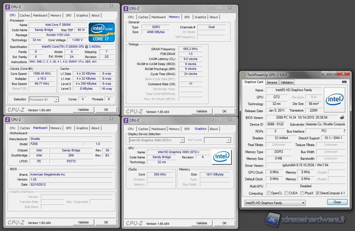 Di seguito riportiamo due screen per mostrare tutti i parametri del nostro sistema; abbiamo usato il software di monitoring CPU-z per la CPU, scheda madre e memorie, mentre per il sottosistema video abbiamo usato l'utility GPU-z: